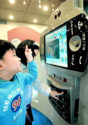 首爾松坡區新川洞三星兒童博物館爲迎接開館11周年,將從17日開始展示重新裝飾的2個體驗式展示館。16日,提前受邀先於普通人參觀的孩子們正在撫摸發出各種各樣音樂鈴聲的大型手機模型。