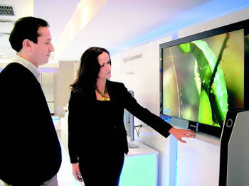 在位於聖地牙哥市中心的Americo Vespucio第100號街的三星電子智利法人産品展示場上,智利消費者正在參觀。2年前生效的韓、智FTA成爲“起爆劑”,韓國的尖端電子産品和汽車在智利市場逐漸成爲霸主。