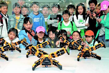 14日,在京畿龍仁市愛寶樂園特別展示館,舉行了“智慧型機器人體驗展”。前來觀看展覽的小朋友們對機器人多樣的舞蹈動作顯示出極大的興趣。該活動將舉行到下月18日。
