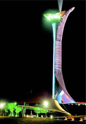 可以飽覽世界珍貴花卉和庭院文化的“2006世界園藝博覽會”上月30日在中國瀋陽市棋盤山旅遊區開幕。在長達6個月的園藝博覽會期間,還將舉行“世界光博覽會”。29日,立于博覽會的百合塔亮出了華麗的照明。