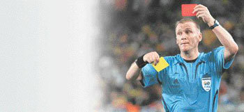 16強比賽已全部結束,在共64場比賽中,還剩下8場比賽,到目前爲止,出現的紅牌加上累積兩張黃牌被紅牌罰下場的情況,共有25張。在首次引進64場比賽體制的1998年法國世界盃上,到決賽爲止,共出現了21張紅牌。在2002年韓日世界盃上減少到了16張之後,再次增長,早早就創下了新紀錄。每場比賽的平均罰下場件數也從1998年的0.32件減少到2002年的0.25件,在本屆世界盃上,到目前爲止是平均0.45件,高出近1倍。