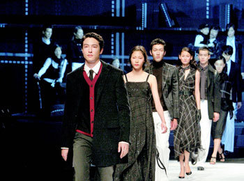 11日,在首爾中區獎忠洞新羅酒店舉行的“Bean Pole2006秋冬時裝秀”上,包括著名藝人丹尼爾·黑尼(前)在內的模特們正在展示秋冬服裝。