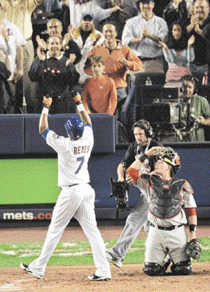 19日,紐約大都會隊在紐約希爾體育館中進行的NLCS第6場比賽中,憑藉首發出場的焦恩-梅恩的出色表現和胡塞-雷耶斯的本壘打先發制人,以4-2戰勝了聖路易斯隊。雙方總比分爲3-3。