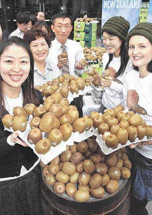 新西蘭觀光廳韓國事務所8日在首爾中區新聞路第一街舉行了開業儀式。當天,觀光廳職員們用蛋托裝上獼猴桃發給市民。新西蘭觀光廳表示,獼猴桃具有新西蘭人、國鳥幾維鳥、水果獼猴桃三種意思。