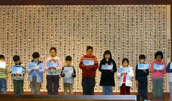8日,小朋友們在首爾鍾路區世宗路政府中央大廈分館舉行的《世界人權宣言》58周年