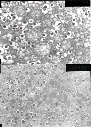 結果幼鼠出生時處於營養失調狀態,體重比正常白鼠低20%左右。斷奶後,即使喂以正常飼料,體重也不太容易增長。在出生20周之後,研究組分解了這只幼鼠的胰腺,通過電子顯微鏡進行了觀察。出生20周的鼠,相當於20、30多歲的人。