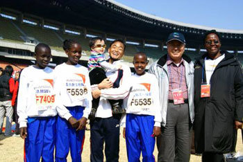 夢想參加馬拉松的麗基諾伊(13歲,女),拉紮勒斯(12歲),喬伊斯(12歲,女)穿上在本屆馬拉松大賽上奪得冠軍的李鳳柱贈送的運動服和運動鞋,生平第一次參加了“國際馬拉松大賽”。