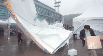 強風掀翻天棚