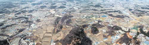 圖爲,即將正式銷售公寓的京畿道坡州市雲井新城市的全景。雲井新城市面積約爲500萬坪,將建設4.6794萬套住房,其中7700多套將在今年出售。