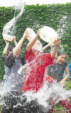 12日,外國人學校——首爾龍山區漢南洞國際基督教學校的高中生們到漢江市民公園梨村地區進行了野遊。圖爲學生們正在打水仗。當天,首爾白天最高氣溫達到29.7度。大邱最高氣溫達到32.7度,浦項爲31.2度,南方大部分地區均超過30度。