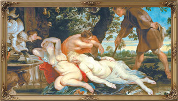 以蔔伽丘的《十日談》爲素材的魯賓斯的大作《西蒙與埃菲格尼亞》(音譯)也是吸引人的作品。紅彤彤的面頰和肉感十足的白皮膚女性,從中可以一眼就看出魯賓斯的作品特點。