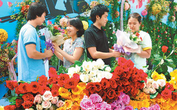 6日迎來“情人日”,韓國花園協會和韓國花卉生産者協會在首爾松坡區芳荑洞奧林匹克公園演繹了用鮮花表達愛情的場面。兩個團體從3年前開始將6日指定爲情人日,舉行促銷活動。