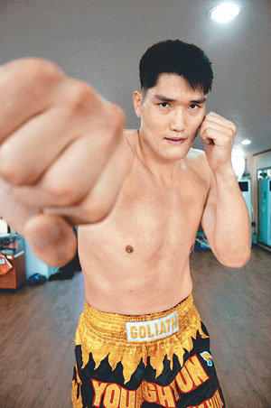 他就是金榮鉉(音譯,31歲)。他一度是號令沙場的天下壯士。他預定本月中旬左右奔赴泰國接受泰拳訓練。身高2.17米,體重147公斤的他正在泰國當地物色身高1.90米,體重100公斤以上的拳擊練習夥伴。他計劃即使是在泰國的簡陋鄉村道場進行比賽也無所謂,無論是哪里,一定要去學習。