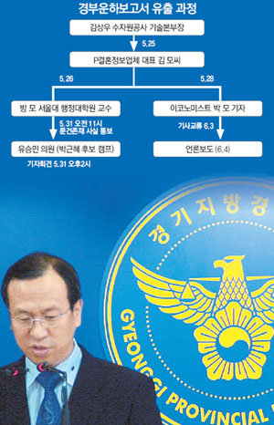 9日,京畿地方警察廳調查科科長金正燮正在闡述調查內容。他說:“在37頁的京釜運河報告被媒體報道前,5月31日前大國家黨代表朴槿惠方面首先獲知有這份報告。”