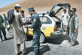21日,在阿富汗加茲尼省,當地警方在前一天23名韓國人被綁架的高速公路上正在檢查車輛。韓國政府派遣的釋放交涉代表團於22日抵達喀布爾,與塔利班武裝組織進行接觸,被綁架事件進入了新局面。