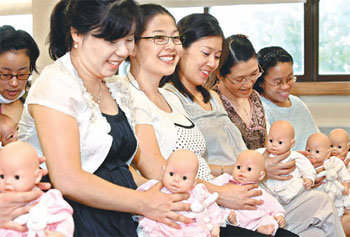 爲迎接8月份第一周世界母乳餵養周,“母乳餵養體驗授課”活動在首爾廣津區保健所舉行,參加該活動的孕婦們正在聽講師講解母乳餵養法。