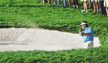 聲稱如果拿到獎金將全額用於設立慈善基金的崔京周,今天以83.3%的命中率,平均標準杆數為1.467個,顯示打高爾夫精湛的技藝。
