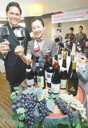 28日在首爾中區小公洞勞迪大廈裡召開的韓亞航空機內香鑌介紹會中,全國頂級調酒師和國內最初的調酒師朴慧珠女士品嘗了最新的機內香檳。韓亞航空預備以9月的美洲路線開始,把18種最新機內香檳提供給乘客們。