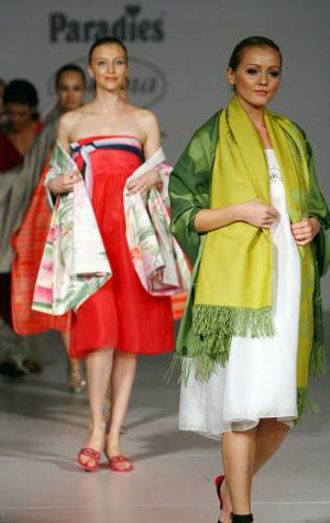 19日,在首爾三城洞現代百貨商店的貿易中心商店召開的床上用品時尚秀中,模特們正在展示床以及枕套的裝飾方法。