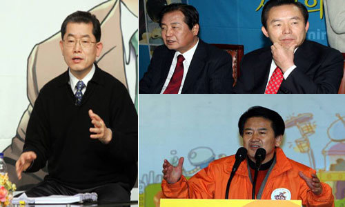 18日,大統一民主新党候選人鄭東滬(左)繼民主黨候選人李仁濟(中)後,也向創造韓國党候選人文國現(右)提出單一化。