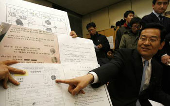 23日,金景鈞的母親金英愛帶著裏面裝有提交給監察的,有關BBK內幕合同書等書面材料的書包,從洛杉磯發的大韓飛機上走出之後,直奔仁川國際機場的入境審查廳。