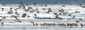 忠南泰安前海,從新年1號開始就出現了一群前來拜訪的鴨子。當日因為強風無法進行防治工作,但曾被汽油覆蓋的海面已經逐漸恢復成原樣了。
