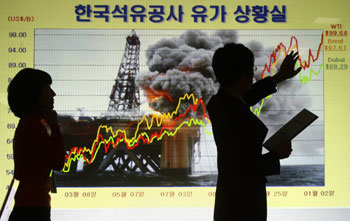 美國西部德克薩斯產的中質原油(WTI),一時突破了每桶100美元的關口,由此刷新了史前的國際油價。3日,京畿安陽市韓國石油公司的職員們緊急考察國際油價的情況,國內的工業界也高度關注油價的趨勢,並正在費盡心血準備對策。