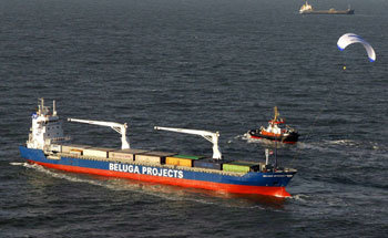 22日,全球第一艘用風箏提供輔助動力的1萬噸級商船“BELUGA PROJECTS”號從德國起航,首次開往委內瑞拉。由德國白鯨公司製造的這艘船可以將面積160平方的風箏放至100米~300米高空,還可以根據風勢節約35%~50%的燃料。