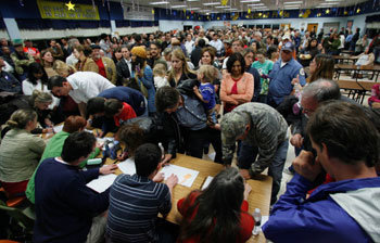4日,位於德克薩斯州的奧斯丁召開的黨員大會中,美國民主黨員們確認身份之後,正在簽名。當天,在德克薩斯州結束總統預選之後,召開了只有黨員們參加的黨員會議。
