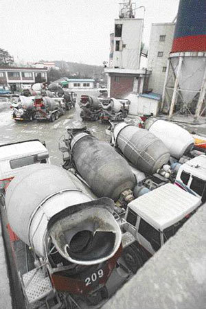 13日下午,京畿龍仁市白岩面的一個水泥車工廠。水泥車的主原料水泥價格一年內漲了30%,韓國水泥車工業協助組合聯合會於12日表示:“如果水泥車的出貨價格不張12%以上,就要從19日開始中斷無期限生產。”