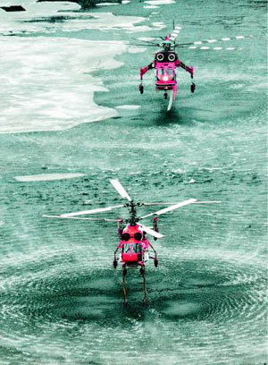 江陵森林航空管理所和陸軍8軍團直升機,13日,在江原襄陽郡雪嶽山附近,進行滅山火的訓練,他們正把湖水運到直升機裏。這個地區在12日也下了乾燥警報,這幾天容易引起山火的天氣一直在持續。