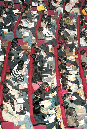 15日首爾崇實大學舉辦了“2009年度入學說明會”,參加說明會的家長和考生傾聽著各大學的典型教育方法、特徵、注意事項等。