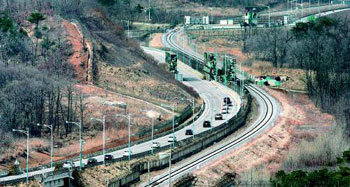 可乘坐自家車旅遊金剛山的陸路觀光時代開始了。 17日韓方的遊客乘坐的汽車經過南北出入境事務所駛向了金剛山。