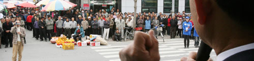 18大總選僅剩一周的2日,聚集在忠南青陽郡青陽市場的選民們正在聽取某候補的選舉演說。