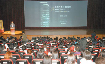 參加輿論社就業說明會的學生們,正認真聽取介紹東亞日報的內容。13日,在高麗大學仁川紀念館召開的此次活動,由高麗大學經歷開發中心主辦、傳媒人才網主管。
