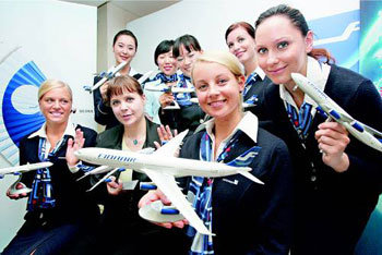 芬蘭航空公司Finnair從下個月3日首爾至赫爾辛基直航路線第一次通航之前的27日開始,會在位於首爾鐘路區世宗路的ima咖啡店召開介紹Finnair歐洲通航城市的“Finnair歐洲旅行秀”。成為宣傳大使的芬蘭電視藝人達魯(前排左起第二)和乘務員們合影留念。
