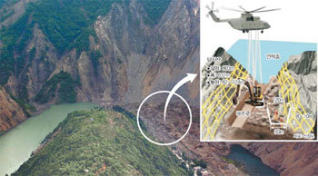 由於山崩滑下來的泥和石子堵截位於中國北川縣唐家山的自然湖形成堰塞湖。27日獲悉,災害當局原先計畫爆炸部分堤防,但考慮到地基的弱化有可能帶來的危險,決定首先著手抽水工作。由於堰塞湖有可能崩潰,位於下游地區北川地區的13萬居民轉移到了鄰近地區。