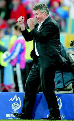 只要他負責會成為強隊。他就是在2008歐洲錦標賽中讓邊緣球隊俄羅斯隊贏得4強的“魔法”教練-希丁克。他有領導球隊的一貫原則。所以這讓韓國的球迷回想起了2002年世界盃奪得4強的神話。