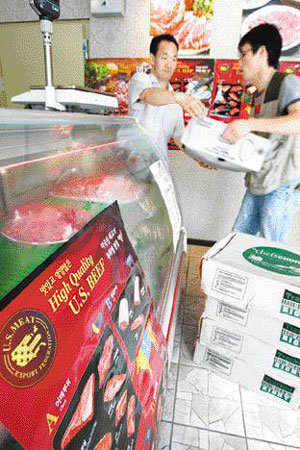30日,首爾衿川區始興洞一所進口牛肉銷售場正在進行商場整理,他們準備銷售美國牛肉。這一天,商場打來了許多諮詢LA排骨等美國牛肉的諮詢電話。韓國進口牛肉協會正在考慮實行從15日起,限時對牛肉進行30%的優惠方案。
