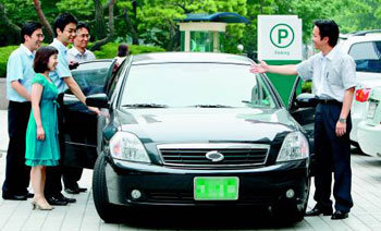 韓亞金融集團交通部金基鴻次長(右側)18日下午,正在首爾永登浦區韓亞金融集團本社前,伸手讓同事搭乘自己的車。他每天上下班都會讓2、3名同事搭便車。