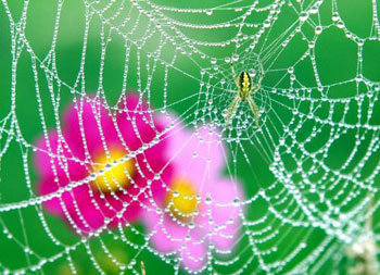 1日,下雨後被霧籠罩的江源平昌郡三陽大關嶺牧場。在雨霧中,織網的蜘蛛、凝在蜘蛛網上的寶石般的水珠、透過蜘蛛網看到的大波斯菊,都可以感覺到秋天已經來到我們的身邊了。