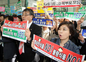 30日,韓國教師團體聯盟、家長聯盟等4個社會團體在政府中央大廳後門召開了記者招待會,要求政府修訂有關肅清含有三聚氰胺成分的食品的相關法律條例。