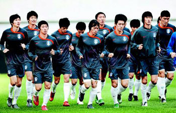 代表隊中曾參加過北京奧運會的23歲以下選手有:鄭成龍、其盛勇、李青龍、李謹虎、申永祿、徐東賢等6名。這些選手在與烏茲別克斯坦進行比賽時都表現良好。李謹虎在下半場參賽,踢進了2個球,其盛勇也在迎戰朝鮮時踢進了一球。