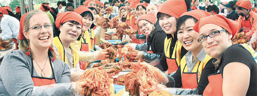 政府16日正式宣佈今年是韓食成為世界5大飲食的元年。而且政府的目標就是在2017年之前讓韓食列入世界5大飲食行列。15日,在光州市立民俗博物館舉辦了以辣白菜文化為主題的“2008光州辣白菜慶典”。參加慶典的外國人正在親自體驗製作辣白菜的過程。