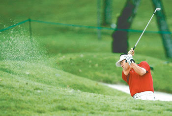 “坦克”金景珠(耐克高爾夫)14日在新加坡參加了亞洲職業高爾夫巡迴賽。比賽的第2回合第12個洞,她打出了一杆強有力的沙坑球。