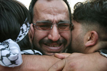 15日,從以色列獲得釋放的巴勒斯坦囚犯們正在約旦河西岸與家人團圓。當天,以色列根據巴勒斯坦自治政府首腦人阿巴斯的要求,釋放了224名巴勒斯坦囚犯,以此作為雙方信賴及和解的信號。