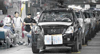 雙龍汽車工會進入總罷工的第二天(22日),京畿平澤市的雙龍汽車工廠的生產線全部處於停滯狀態。
