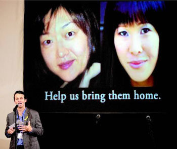 24日,在美國加利福尼亞洲洛杉磯市的某大禮堂中,被朝鮮扣留的美國記者Laura Ling的丈夫克萊頓為敦促朝鮮釋放其妻子,而做了一番演講。而且,越過克萊頓的身後,可以看見Laura Ling和Euna Lee的照片。克萊頓在當天的演說中稱:“我和妻子曾在21日晚通過電話,在整個通話過程中,她就像在害怕什麼似的。”為督促朝鮮釋放兩名記者,親人和市民等200多人前來參加了當天的集會。