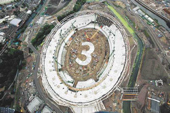 2012年倫敦奧運會倒計時3年的27日,英國倫敦奧運會主競技場建設現場上,勞動者們排列成數字3的形狀,以此表示慶祝。第30屆倫敦奧運會將從2012年7月27日開始到8月12日截止。