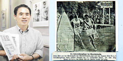 本月9日,奧運會系列郵票集郵家吳華錫(音•33歲)先生表示:“上述兩位簽名的柏林奧運會紀念郵票是好不容易入手的。當時,雖然處於日本帝國主義的監視下,但孫先生未使用日文名‘孫龜齡’,而是用韓語寫上‘孫基禎’,表明自己是朝鮮人。”當天,正是孫基禎先生站在柏林奧運會最高領獎臺73年之際。同時也是黃永祚選手,在1992年巴賽隆納奧運會以2小時13分23秒獲得馬拉松冠軍的日子。